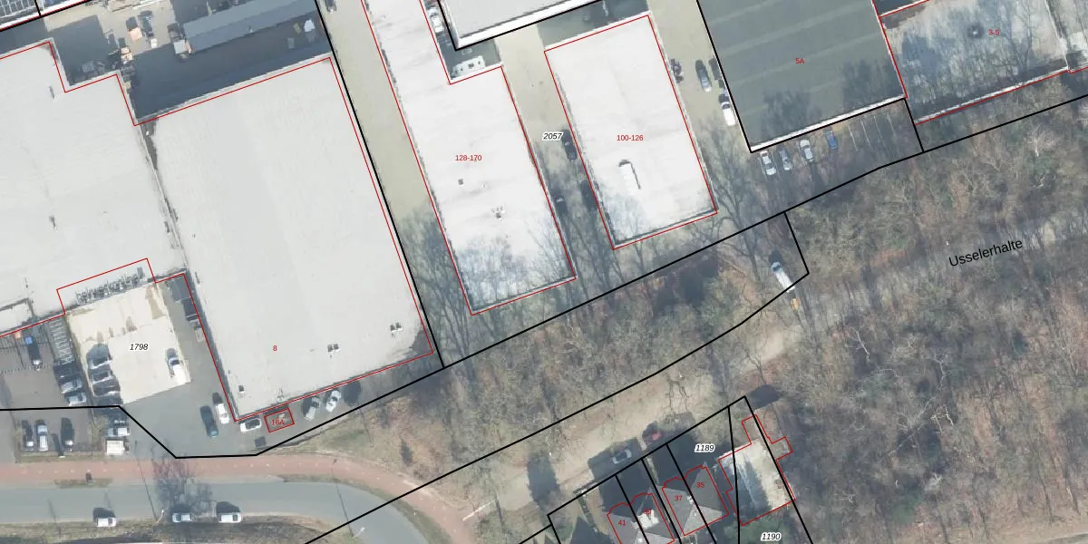 Het perceel waarop Usselerhalte 128 staat heeft een oppervlakte van 4376 m². Dit is een zeer groot perceel. De perceeloppervlakte wordt geregistreerd door het Kadaster. Gedetailleerde informatie over de maten van dit perceel kunt u vinden in het rapport Kadastrale kaart met maatvoering van Usselerhalte 128.