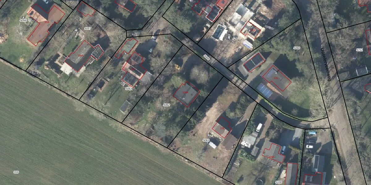 Usselerveenweg 126-A is gelegen op kadastraal perceel LNK00H5062. Deze kadastrale aanduiding is uniek en wordt gebruikt door het Kadaster om eigendomsrechten en andere zakelijke rechten vast te leggen. Het perceel maakt onderdeel uit van de kadastrale gemeente Lonneker.