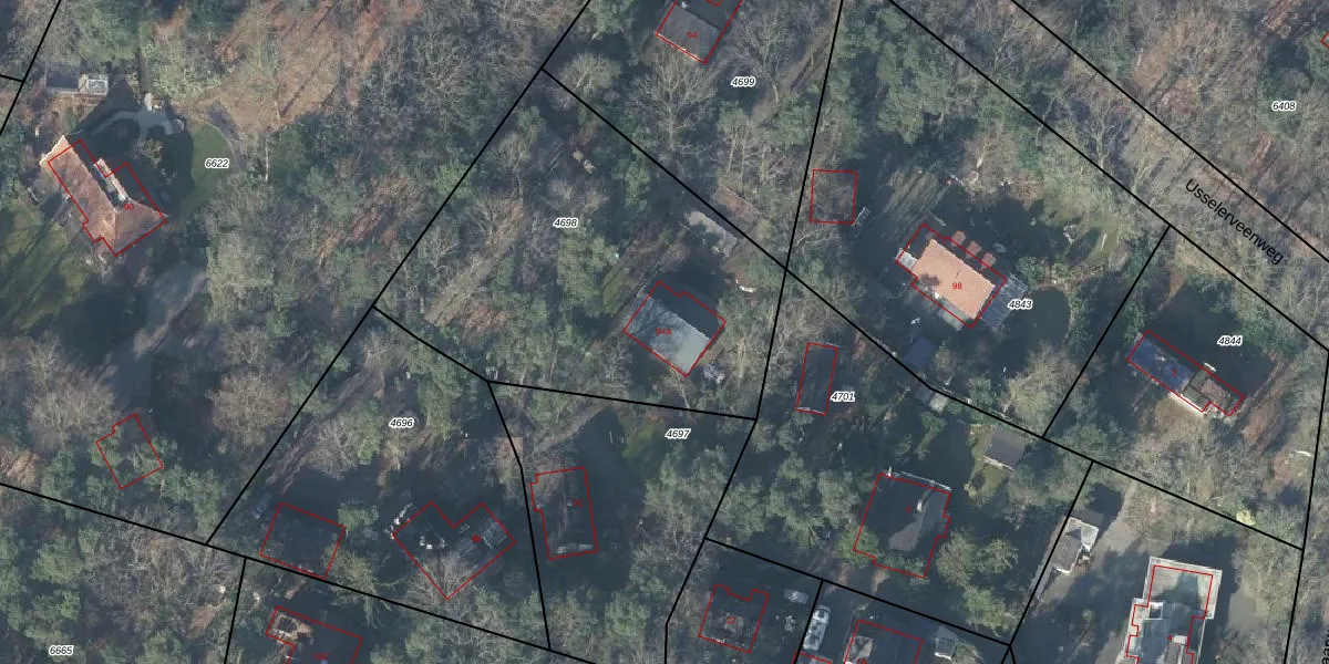 Het perceel waarop Usselerveenweg 94-A staat heeft een oppervlakte van 1878 m². Dit is een zeer groot perceel. De perceeloppervlakte wordt geregistreerd door het Kadaster. Gedetailleerde informatie over de maten van dit perceel kunt u vinden in het rapport Kadastrale kaart met maatvoering van Usselerveenweg 94-A.