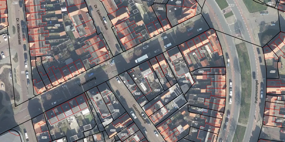 Het perceel waarop Usselerweg 23 staat heeft een oppervlakte van 392 m². Dit is een groot perceel. De perceeloppervlakte wordt geregistreerd door het Kadaster. Gedetailleerde informatie over de maten van dit perceel kunt u vinden in het rapport Kadastrale kaart met maatvoering van Usselerweg 23.