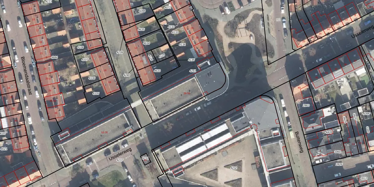 Usselerweg 42 is gelegen op kadastraal perceel ESD00G4241. Deze kadastrale aanduiding is uniek en wordt gebruikt door het Kadaster om eigendomsrechten en andere zakelijke rechten vast te leggen. Het perceel maakt onderdeel uit van de kadastrale gemeente Enschede.