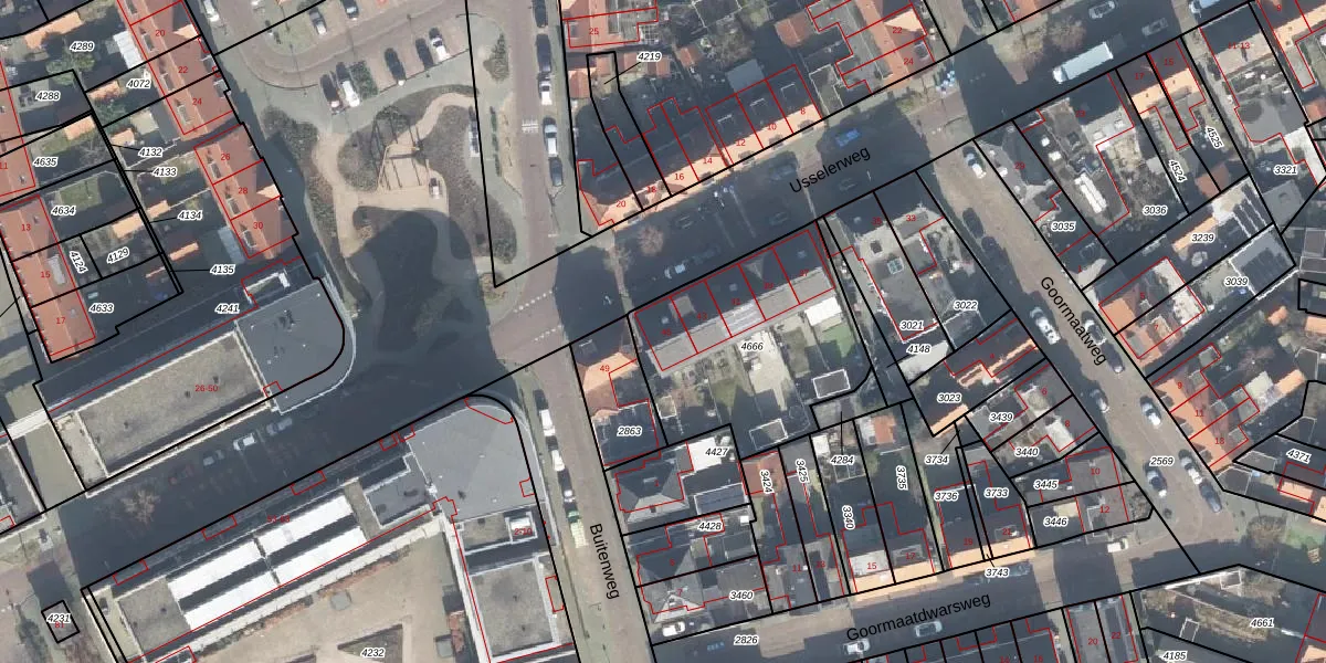 Het perceel waarop Usselerweg 45 staat heeft een oppervlakte van 822 m². Dit is een groot perceel. De perceeloppervlakte wordt geregistreerd door het Kadaster. Gedetailleerde informatie over de maten van dit perceel kunt u vinden in het rapport Kadastrale kaart met maatvoering van Usselerweg 45.