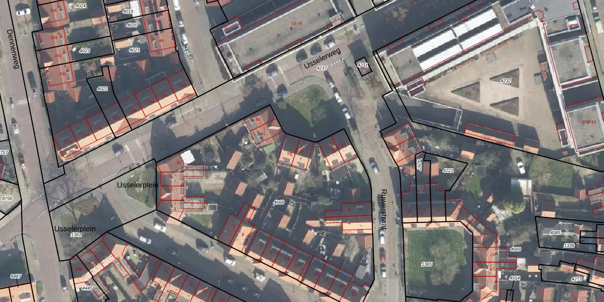 Usselerweg 87 is gelegen op kadastraal perceel ESD00G4668. Deze kadastrale aanduiding is uniek en wordt gebruikt door het Kadaster om eigendomsrechten en andere zakelijke rechten vast te leggen. Het perceel maakt onderdeel uit van de kadastrale gemeente Enschede.