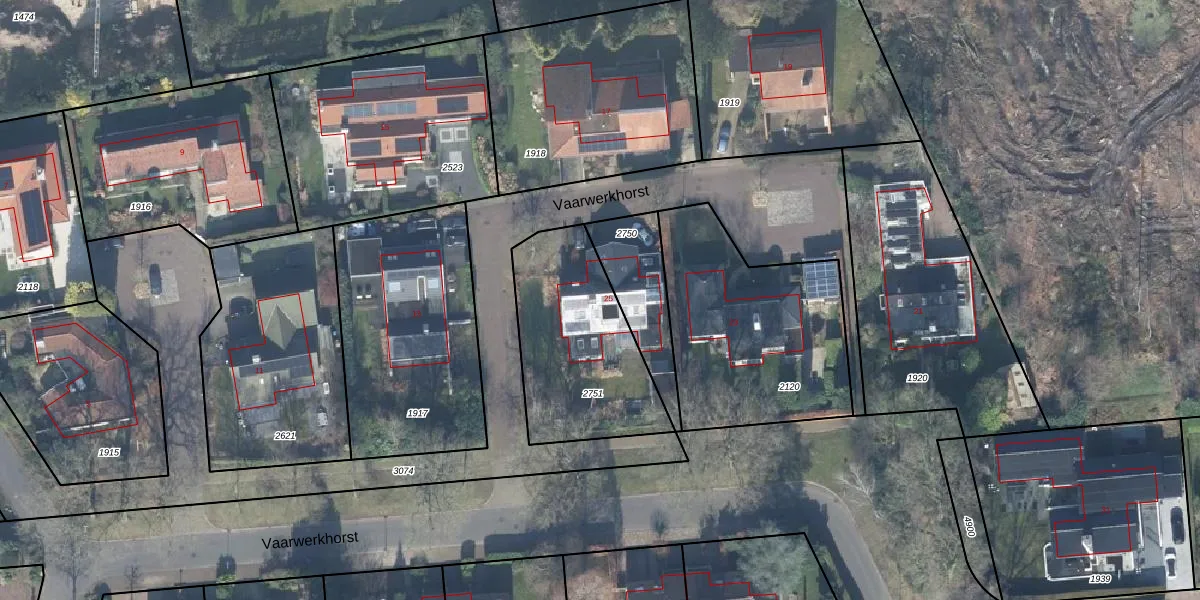 Gebruik de zoekbalk of klik op een perceel voor informatie over de adressen binnen dit perceel.