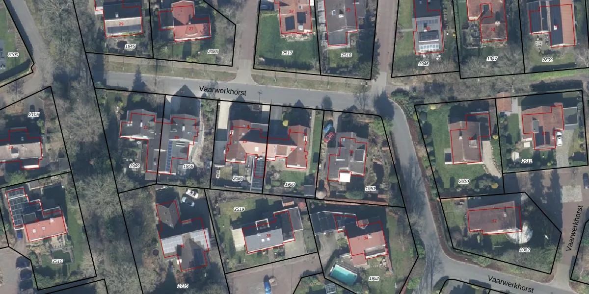 Het perceel waarop Vaarwerkhorst 28 staat heeft een oppervlakte van 545 m². Dit is een groot perceel. De perceeloppervlakte wordt geregistreerd door het Kadaster. Gedetailleerde informatie over de maten van dit perceel kunt u vinden in het rapport Kadastrale kaart met maatvoering van Vaarwerkhorst 28.