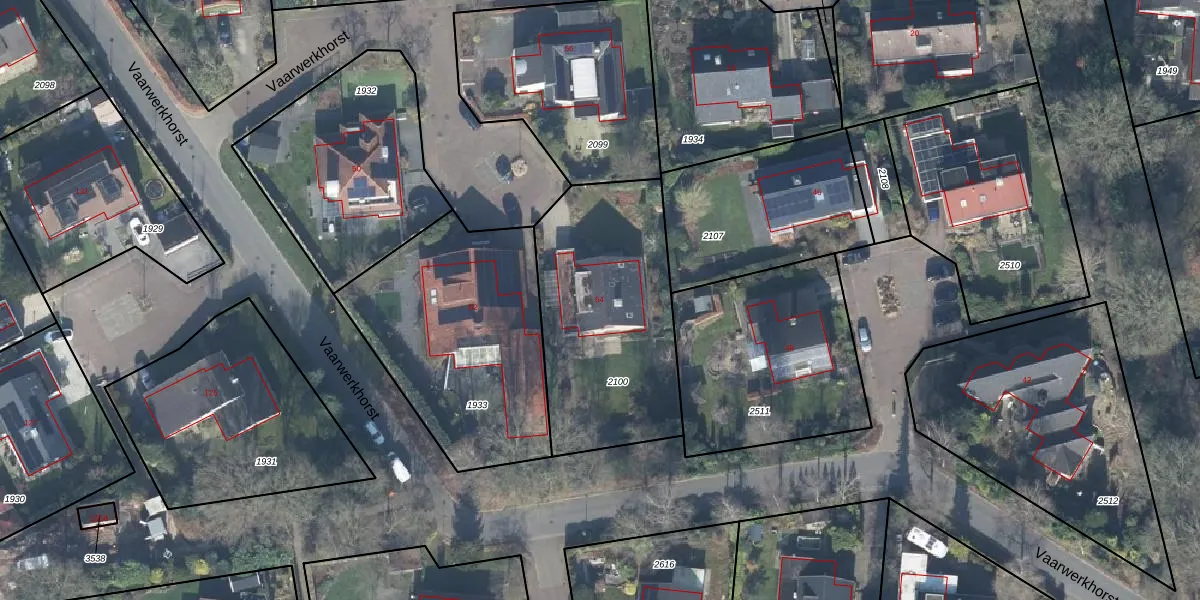 Vaarwerkhorst 54 is gelegen op kadastraal perceel LNK00Q2100. Deze kadastrale aanduiding is uniek en wordt gebruikt door het Kadaster om eigendomsrechten en andere zakelijke rechten vast te leggen. Het perceel maakt onderdeel uit van de kadastrale gemeente Lonneker.