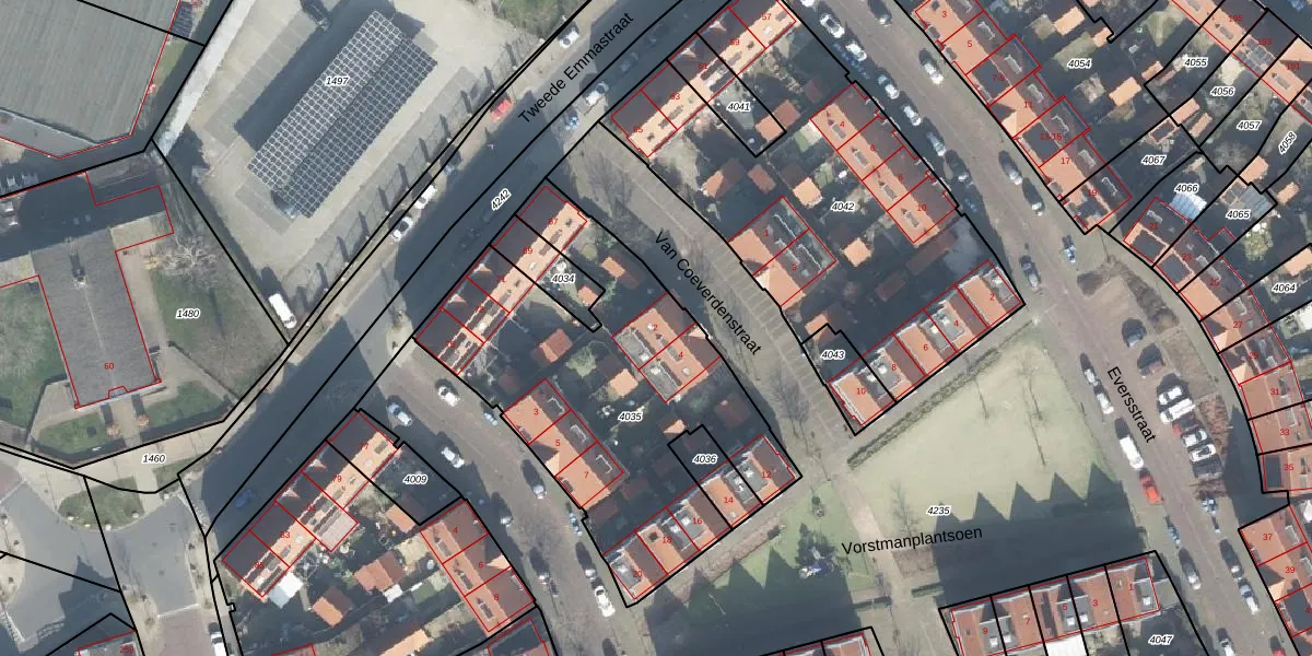 Het perceel waarop Van Coeverdenstraat 2 staat heeft een oppervlakte van 1600 m². Dit is een zeer groot perceel. De perceeloppervlakte wordt geregistreerd door het Kadaster. Gedetailleerde informatie over de maten van dit perceel kunt u vinden in het rapport Kadastrale kaart met maatvoering van Van Coeverdenstraat 2.
