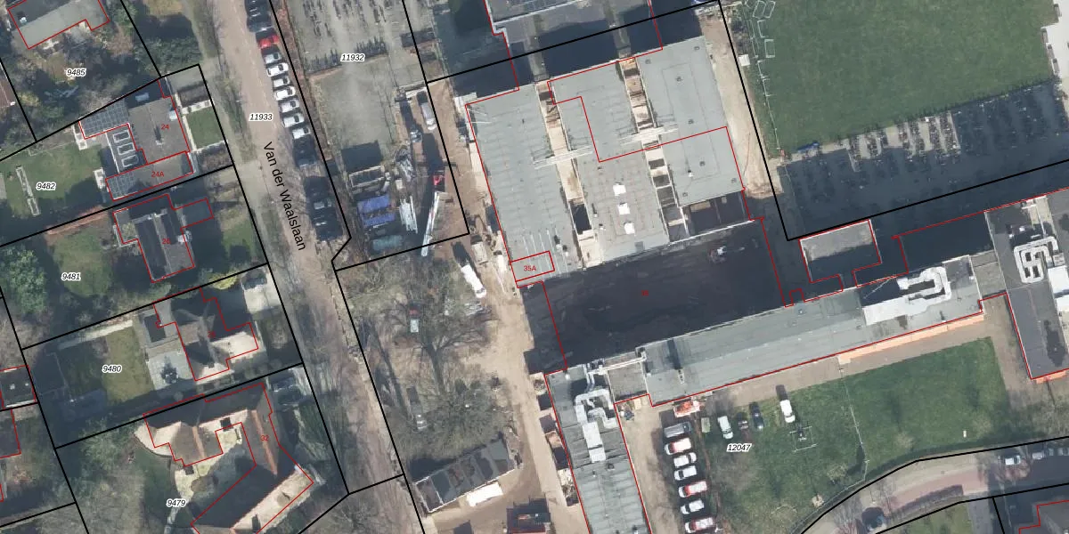 Het perceel waarop Van der Waalslaan 35-A staat heeft een oppervlakte van 1,1 ha. Dit is een zeer groot perceel. De perceeloppervlakte wordt geregistreerd door het Kadaster. Gedetailleerde informatie over de maten van dit perceel kunt u vinden in het rapport Kadastrale kaart met maatvoering van Van der Waalslaan 35-A.