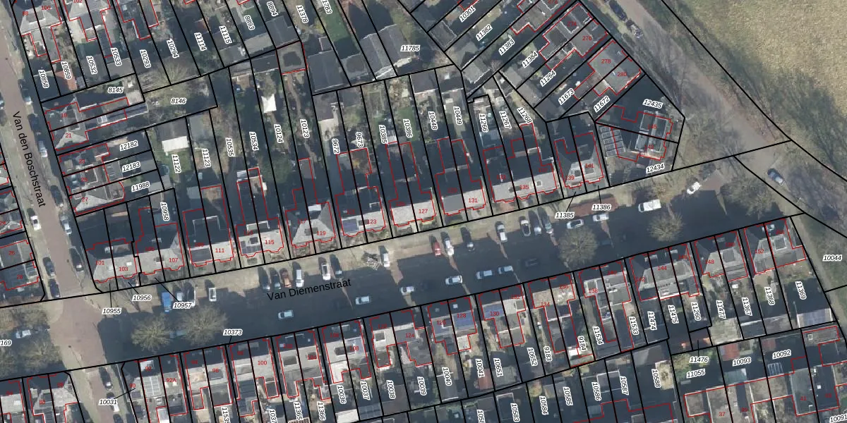 Het perceel waarop Van Diemenstraat 127 staat heeft een oppervlakte van 223 m². Dit is een middelgroot perceel. De perceeloppervlakte wordt geregistreerd door het Kadaster. Gedetailleerde informatie over de maten van dit perceel kunt u vinden in het rapport Kadastrale kaart met maatvoering van Van Diemenstraat 127.