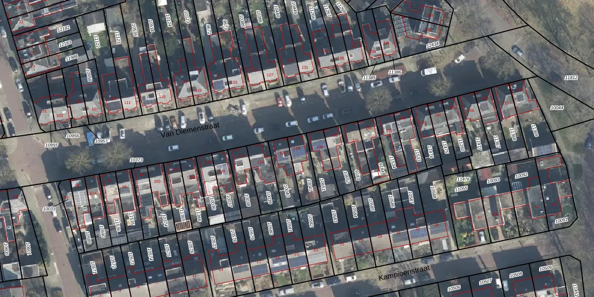 Het perceel waarop Van Diemenstraat 128 staat heeft een oppervlakte van 152 m². Dit is een middelgroot perceel. De perceeloppervlakte wordt geregistreerd door het Kadaster. Gedetailleerde informatie over de maten van dit perceel kunt u vinden in het rapport Kadastrale kaart met maatvoering van Van Diemenstraat 128.