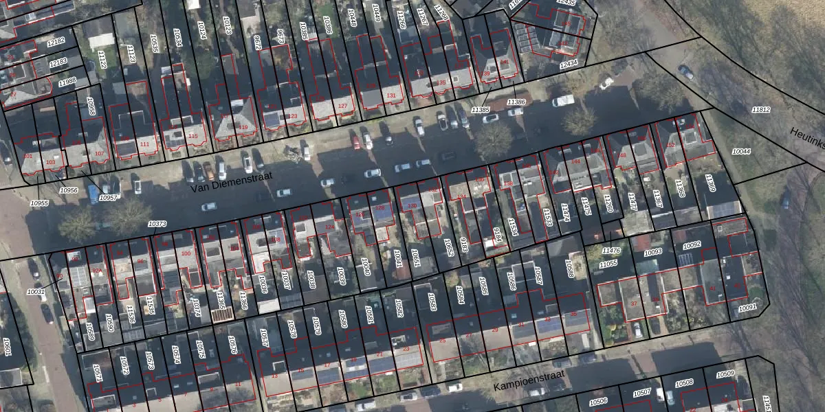 Het perceel waarop Van Diemenstraat 130 staat heeft een oppervlakte van 146 m². Dit is een middelgroot perceel. De perceeloppervlakte wordt geregistreerd door het Kadaster. Gedetailleerde informatie over de maten van dit perceel kunt u vinden in het rapport Kadastrale kaart met maatvoering van Van Diemenstraat 130.