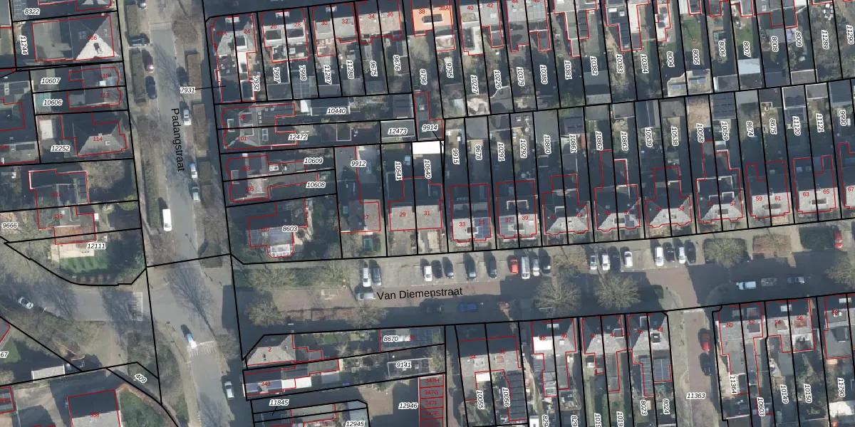 Het perceel waarop Van Diemenstraat 31 staat heeft een oppervlakte van 184 m². Dit is een middelgroot perceel. De perceeloppervlakte wordt geregistreerd door het Kadaster. Gedetailleerde informatie over de maten van dit perceel kunt u vinden in het rapport Kadastrale kaart met maatvoering van Van Diemenstraat 31.