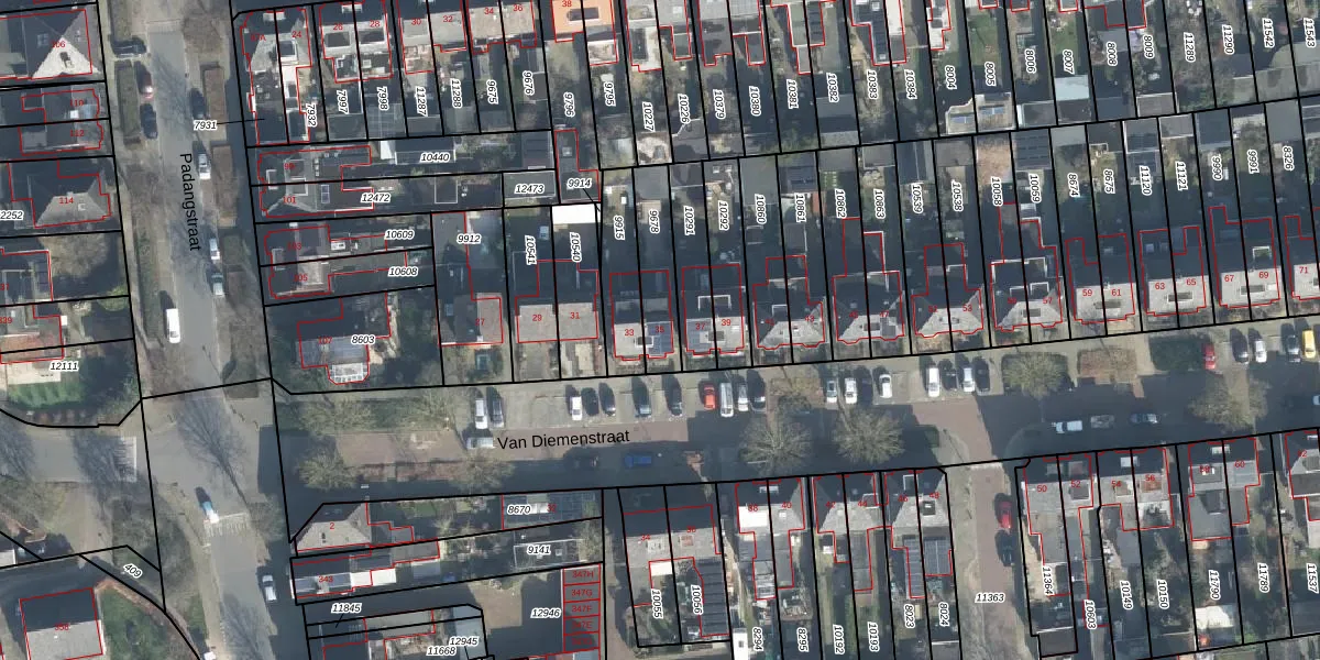 Het perceel waarop Van Diemenstraat 35 staat heeft een oppervlakte van 173 m². Dit is een middelgroot perceel. De perceeloppervlakte wordt geregistreerd door het Kadaster. Gedetailleerde informatie over de maten van dit perceel kunt u vinden in het rapport Kadastrale kaart met maatvoering van Van Diemenstraat 35.