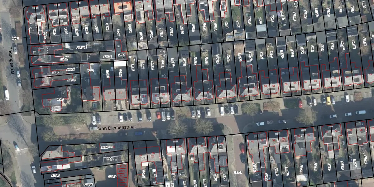 Het perceel waarop Van Diemenstraat 43 staat heeft een oppervlakte van 193 m². Dit is een middelgroot perceel. De perceeloppervlakte wordt geregistreerd door het Kadaster. Gedetailleerde informatie over de maten van dit perceel kunt u vinden in het rapport Kadastrale kaart met maatvoering van Van Diemenstraat 43.