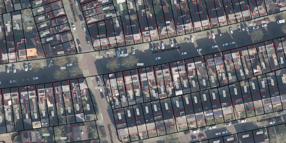 Het perceel waarop Van Diemenstraat 98 staat heeft een oppervlakte van 133 m². Dit is een middelgroot perceel. De perceeloppervlakte wordt geregistreerd door het Kadaster. Gedetailleerde informatie over de maten van dit perceel kunt u vinden in het rapport Kadastrale kaart met maatvoering van Van Diemenstraat 98.