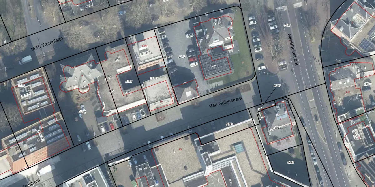 Het perceel waarop Van Galenstraat 8 staat heeft een oppervlakte van 1900 m². Dit is een zeer groot perceel. De perceeloppervlakte wordt geregistreerd door het Kadaster. Gedetailleerde informatie over de maten van dit perceel kunt u vinden in het rapport Kadastrale kaart met maatvoering van Van Galenstraat 8.