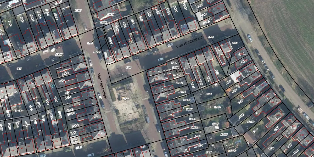 Van Heutzplein 21 is gelegen op kadastraal perceel LNK00O12207. Deze kadastrale aanduiding is uniek en wordt gebruikt door het Kadaster om eigendomsrechten en andere zakelijke rechten vast te leggen. Het perceel maakt onderdeel uit van de kadastrale gemeente Lonneker.