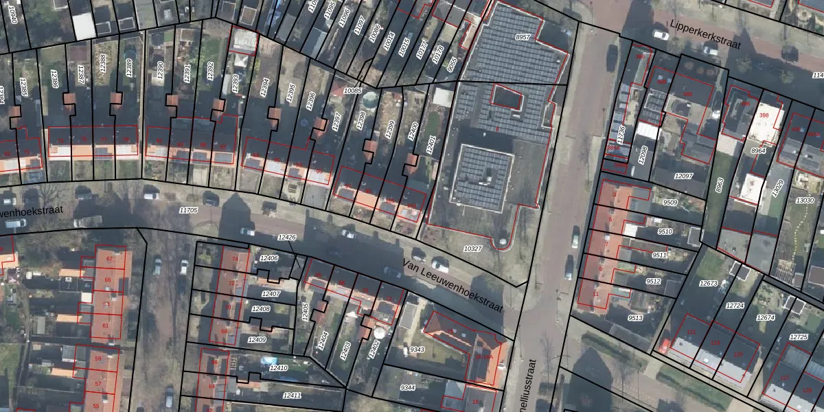 Het perceel waarop Van Leeuwenhoekstraat 103 staat heeft een oppervlakte van 255 m². Dit is een middelgroot perceel. De perceeloppervlakte wordt geregistreerd door het Kadaster. Gedetailleerde informatie over de maten van dit perceel kunt u vinden in het rapport Kadastrale kaart met maatvoering van Van Leeuwenhoekstraat 103.