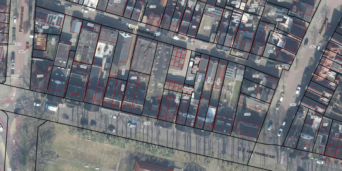 Van Mislostraat 27-I is gelegen op kadastraal perceel LNK00S2032. Deze kadastrale aanduiding is uniek en wordt gebruikt door het Kadaster om eigendomsrechten en andere zakelijke rechten vast te leggen. Het perceel maakt onderdeel uit van de kadastrale gemeente Lonneker.