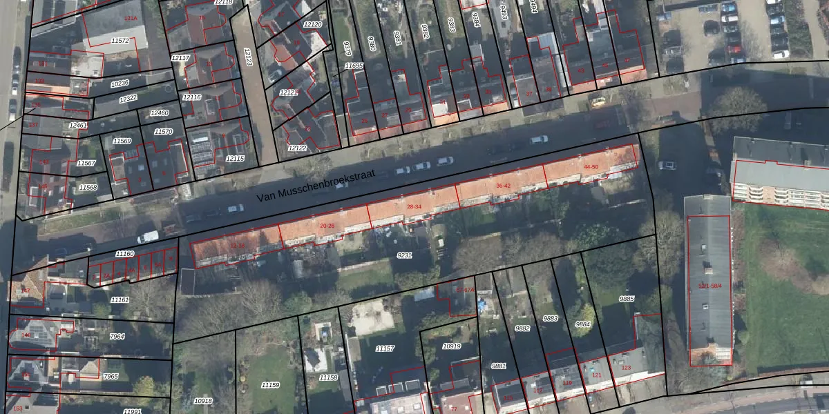 Het perceel waarop Van Musschenbroekstraat 28 staat heeft een oppervlakte van 2923 m². Dit is een zeer groot perceel. De perceeloppervlakte wordt geregistreerd door het Kadaster. Gedetailleerde informatie over de maten van dit perceel kunt u vinden in het rapport Kadastrale kaart met maatvoering van Van Musschenbroekstraat 28.