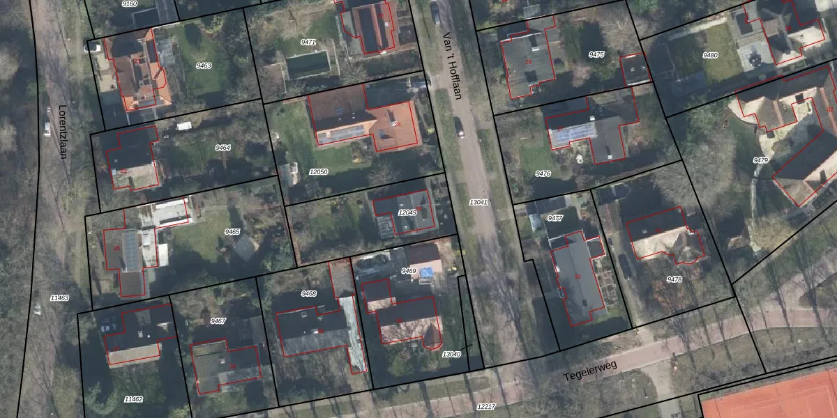 Gebruik de zoekbalk of klik op een perceel voor informatie over de adressen binnen dit perceel.