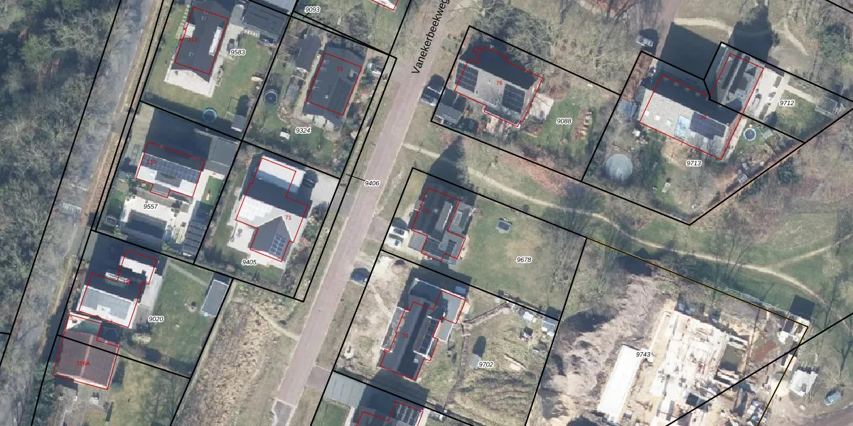 Gebruik de zoekbalk of klik op een perceel voor informatie over de adressen binnen dit perceel.