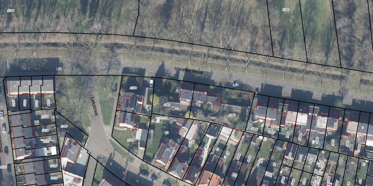 Het perceel waarop Vanekerstraat 31 staat heeft een oppervlakte van 413 m². Dit is een groot perceel. De perceeloppervlakte wordt geregistreerd door het Kadaster. Gedetailleerde informatie over de maten van dit perceel kunt u vinden in het rapport Kadastrale kaart met maatvoering van Vanekerstraat 31.