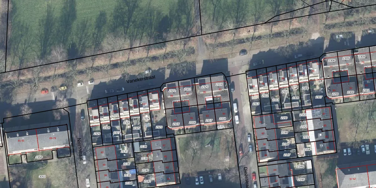 Vanekerstraat 97 is gelegen op kadastraal perceel LNK00R2321. Deze kadastrale aanduiding is uniek en wordt gebruikt door het Kadaster om eigendomsrechten en andere zakelijke rechten vast te leggen. Het perceel maakt onderdeel uit van de kadastrale gemeente Lonneker.