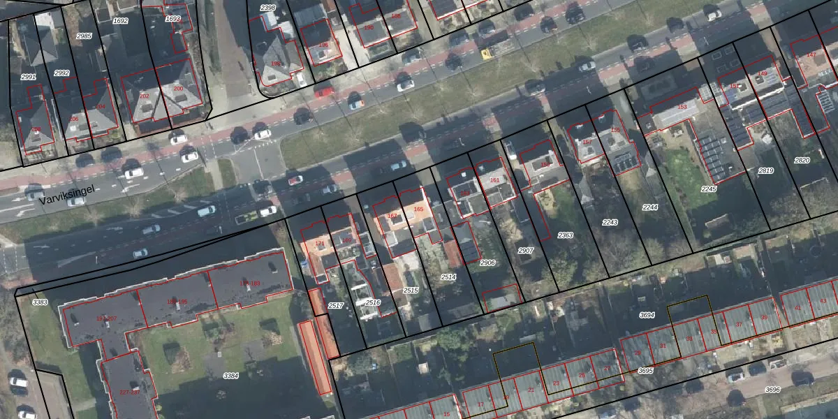 Het perceel waarop Varviksingel 165 staat heeft een oppervlakte van 367 m². Dit is een groot perceel. De perceeloppervlakte wordt geregistreerd door het Kadaster. Gedetailleerde informatie over de maten van dit perceel kunt u vinden in het rapport Kadastrale kaart met maatvoering van Varviksingel 165.