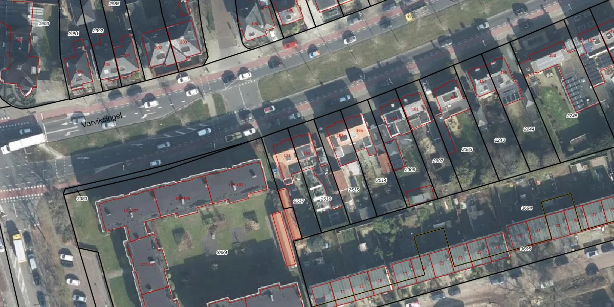 Gebruik de zoekbalk of klik op een perceel voor informatie over de adressen binnen dit perceel.