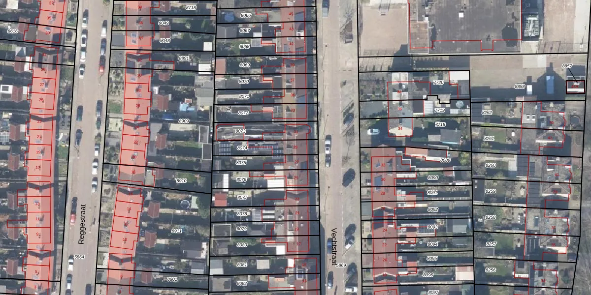 Gebruik de zoekbalk of klik op een perceel voor informatie over de adressen binnen dit perceel.