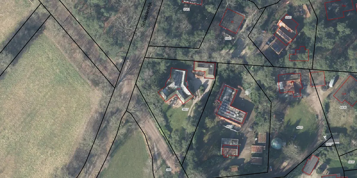 Gebruik de zoekbalk of klik op een perceel voor informatie over de adressen binnen dit perceel.