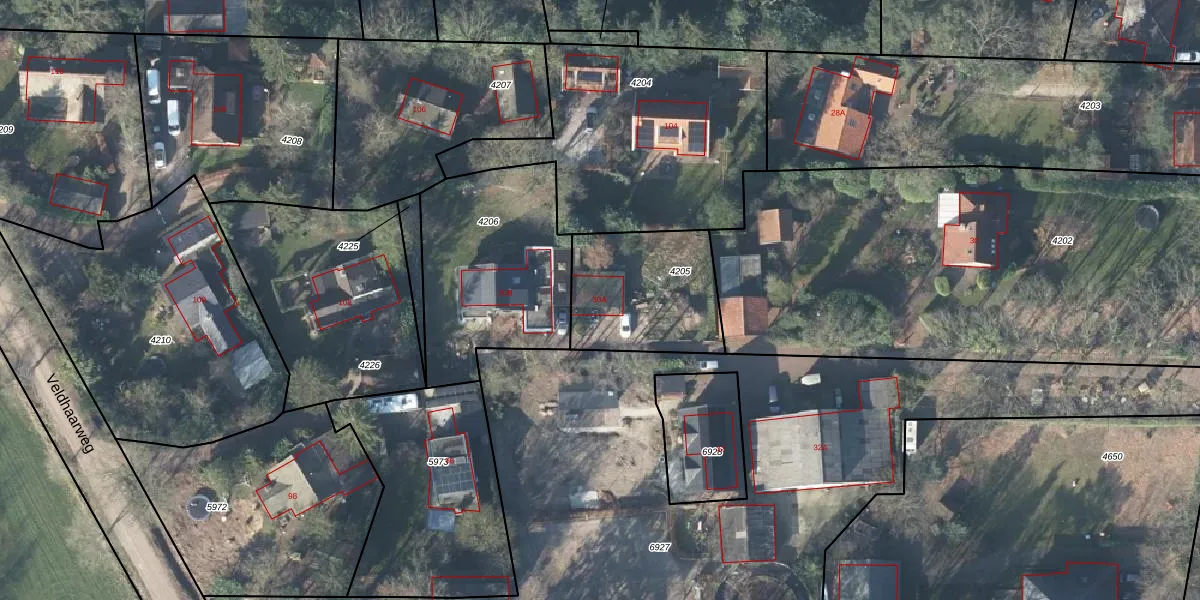 Veldhaarweg 30-A is gelegen op kadastraal perceel LNK00H4205. Deze kadastrale aanduiding is uniek en wordt gebruikt door het Kadaster om eigendomsrechten en andere zakelijke rechten vast te leggen. Het perceel maakt onderdeel uit van de kadastrale gemeente Lonneker.