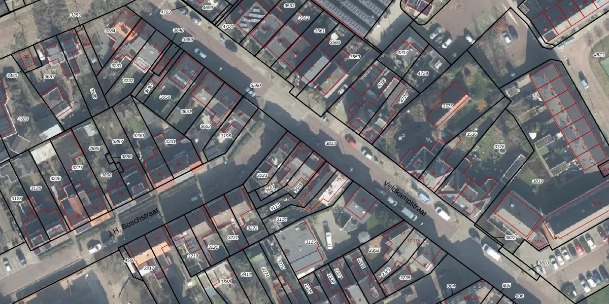 Het perceel waarop Veldkampstraat 33 staat heeft een oppervlakte van 114 m². Dit is een middelgroot perceel. De perceeloppervlakte wordt geregistreerd door het Kadaster. Gedetailleerde informatie over de maten van dit perceel kunt u vinden in het rapport Kadastrale kaart met maatvoering van Veldkampstraat 33.