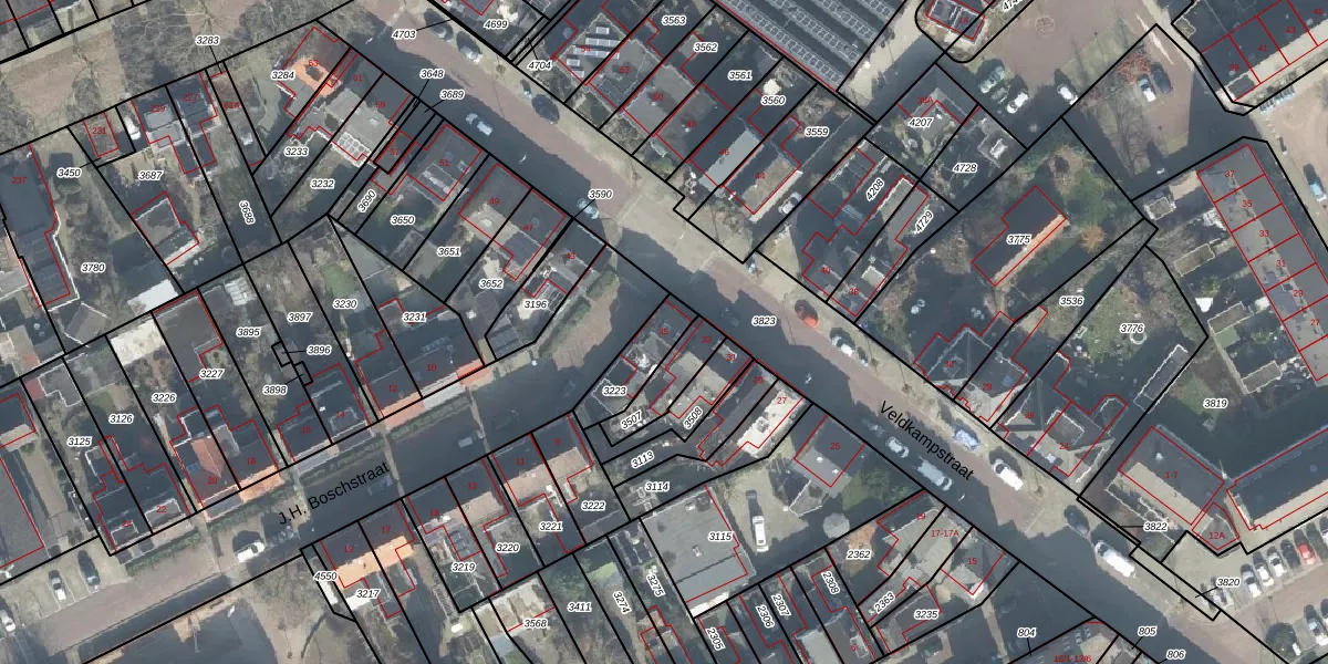 Het perceel waarop Veldkampstraat 35 staat heeft een oppervlakte van 130 m². Dit is een middelgroot perceel. De perceeloppervlakte wordt geregistreerd door het Kadaster. Gedetailleerde informatie over de maten van dit perceel kunt u vinden in het rapport Kadastrale kaart met maatvoering van Veldkampstraat 35.