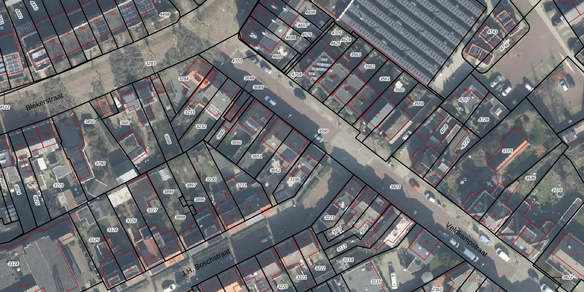 Het perceel waarop Veldkampstraat 47 staat heeft een oppervlakte van 182 m². Dit is een middelgroot perceel. De perceeloppervlakte wordt geregistreerd door het Kadaster. Gedetailleerde informatie over de maten van dit perceel kunt u vinden in het rapport Kadastrale kaart met maatvoering van Veldkampstraat 47.