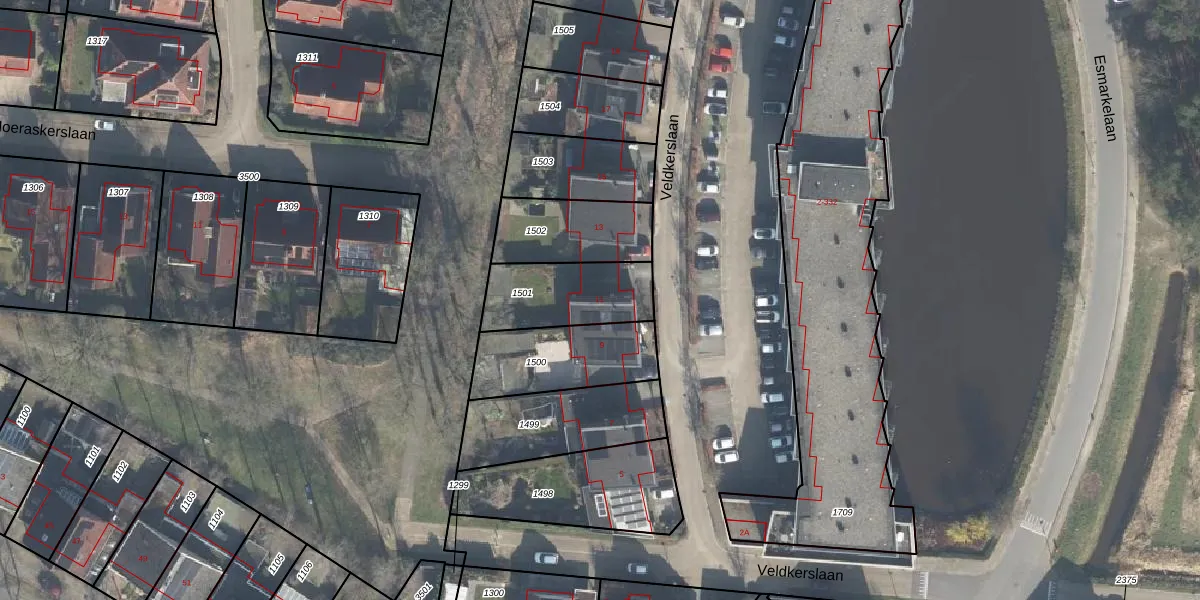 Veldkerslaan 11 is gelegen op kadastraal perceel LNK00AA1501. Deze kadastrale aanduiding is uniek en wordt gebruikt door het Kadaster om eigendomsrechten en andere zakelijke rechten vast te leggen. Het perceel maakt onderdeel uit van de kadastrale gemeente Lonneker.