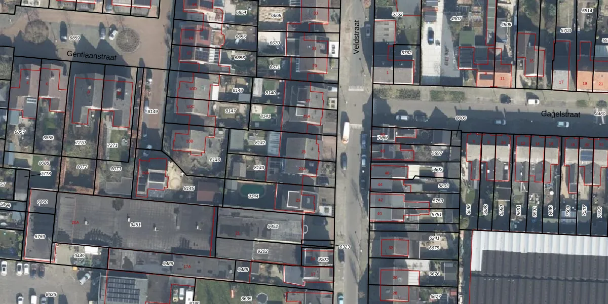 Het perceel waarop Veldstraat 25 staat heeft een oppervlakte van 304 m². Dit is een groot perceel. De perceeloppervlakte wordt geregistreerd door het Kadaster. Gedetailleerde informatie over de maten van dit perceel kunt u vinden in het rapport Kadastrale kaart met maatvoering van Veldstraat 25.