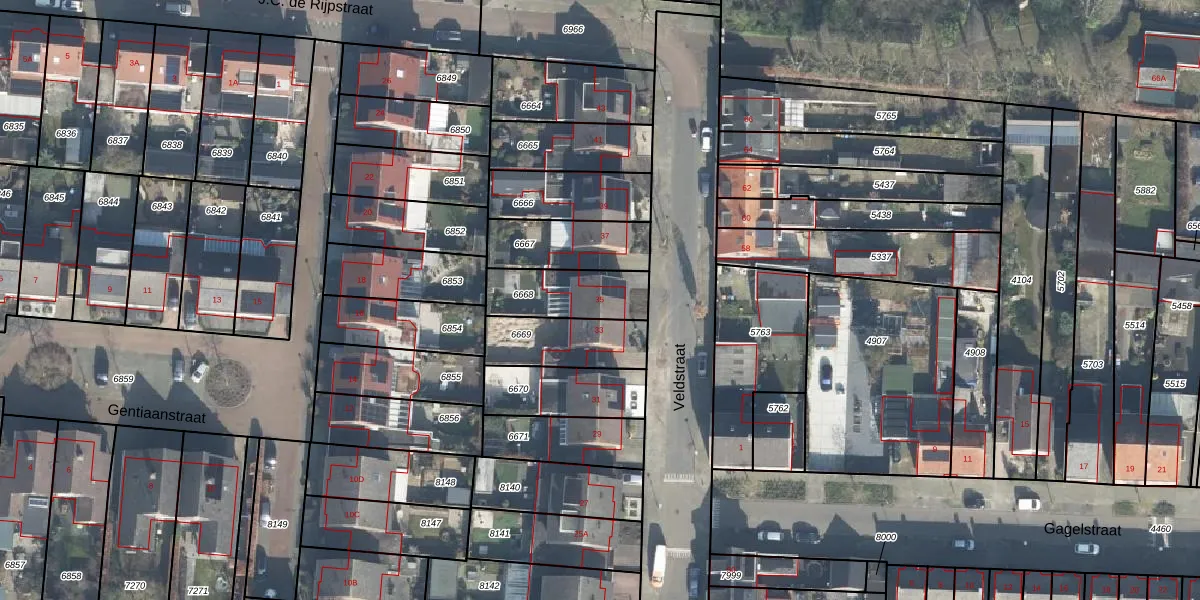 Het perceel waarop Veldstraat 35 staat heeft een oppervlakte van 221 m². Dit is een middelgroot perceel. De perceeloppervlakte wordt geregistreerd door het Kadaster. Gedetailleerde informatie over de maten van dit perceel kunt u vinden in het rapport Kadastrale kaart met maatvoering van Veldstraat 35.