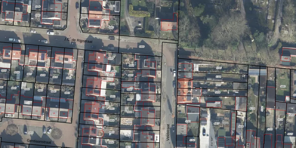 Het perceel waarop Veldstraat 41 staat heeft een oppervlakte van 221 m². Dit is een middelgroot perceel. De perceeloppervlakte wordt geregistreerd door het Kadaster. Gedetailleerde informatie over de maten van dit perceel kunt u vinden in het rapport Kadastrale kaart met maatvoering van Veldstraat 41.