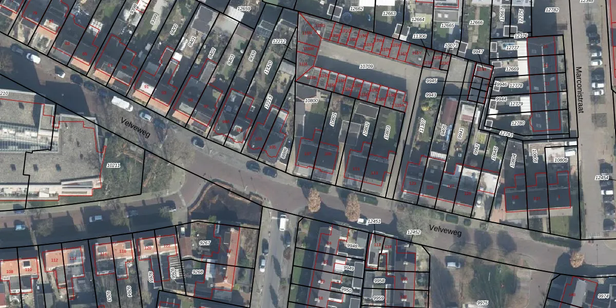 Het perceel waarop Velveweg 107 staat heeft een oppervlakte van 293 m². Dit is een middelgroot perceel. De perceeloppervlakte wordt geregistreerd door het Kadaster. Gedetailleerde informatie over de maten van dit perceel kunt u vinden in het rapport Kadastrale kaart met maatvoering van Velveweg 107.