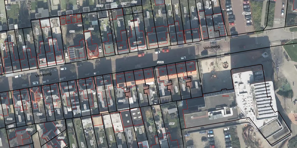 Het perceel waarop Velveweg 32 staat heeft een oppervlakte van 178 m². Dit is een middelgroot perceel. De perceeloppervlakte wordt geregistreerd door het Kadaster. Gedetailleerde informatie over de maten van dit perceel kunt u vinden in het rapport Kadastrale kaart met maatvoering van Velveweg 32.