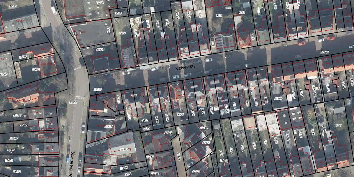 Het perceel waarop Velveweg 8 staat heeft een oppervlakte van 209 m². Dit is een middelgroot perceel. De perceeloppervlakte wordt geregistreerd door het Kadaster. Gedetailleerde informatie over de maten van dit perceel kunt u vinden in het rapport Kadastrale kaart met maatvoering van Velveweg 8.