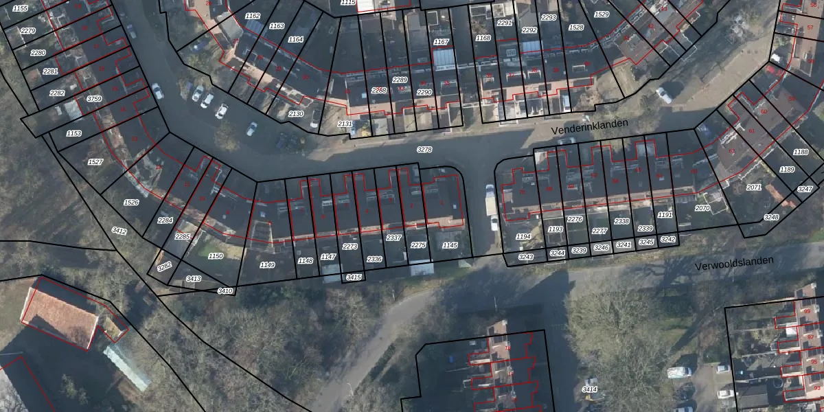Venderinklanden 2 is gelegen op kadastraal perceel LNK00P2275. Deze kadastrale aanduiding is uniek en wordt gebruikt door het Kadaster om eigendomsrechten en andere zakelijke rechten vast te leggen. Het perceel maakt onderdeel uit van de kadastrale gemeente Lonneker.