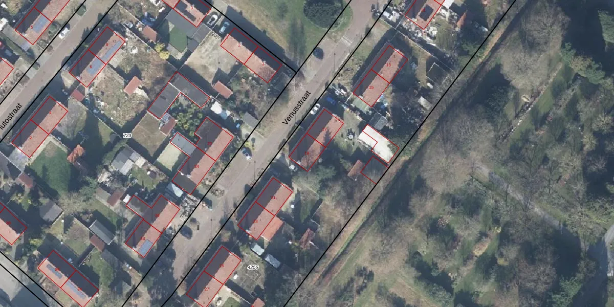 Het perceel waarop Venusstraat 19 staat heeft een oppervlakte van 1,7 ha. Dit is een zeer groot perceel. De perceeloppervlakte wordt geregistreerd door het Kadaster. Gedetailleerde informatie over de maten van dit perceel kunt u vinden in het rapport Kadastrale kaart met maatvoering van Venusstraat 19.