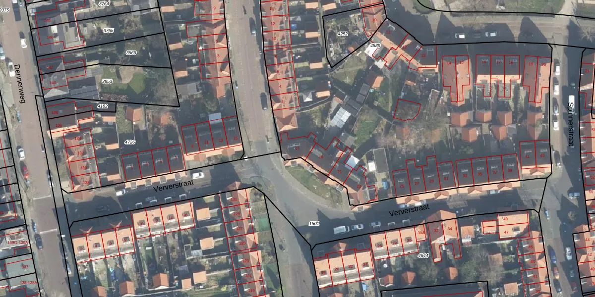 Het perceel waarop Ververstraat 17 staat heeft een oppervlakte van 6975 m². Dit is een zeer groot perceel. De perceeloppervlakte wordt geregistreerd door het Kadaster. Gedetailleerde informatie over de maten van dit perceel kunt u vinden in het rapport Kadastrale kaart met maatvoering van Ververstraat 17.