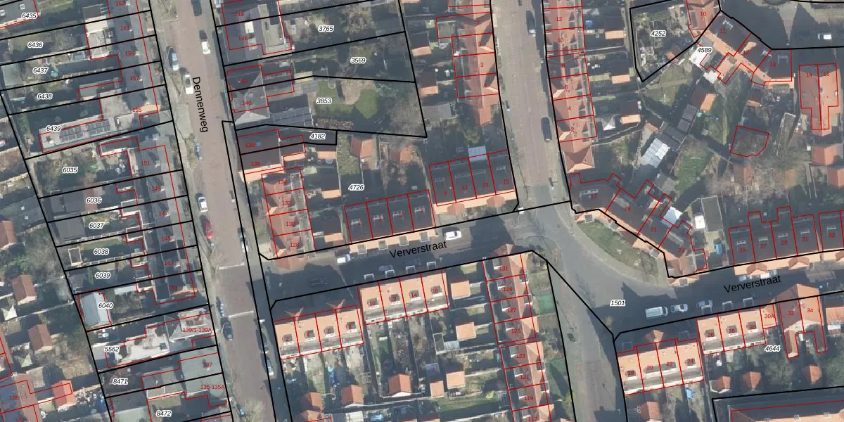 Het perceel waarop Ververstraat 7 staat heeft een oppervlakte van 6303 m². Dit is een zeer groot perceel. De perceeloppervlakte wordt geregistreerd door het Kadaster. Gedetailleerde informatie over de maten van dit perceel kunt u vinden in het rapport Kadastrale kaart met maatvoering van Ververstraat 7.