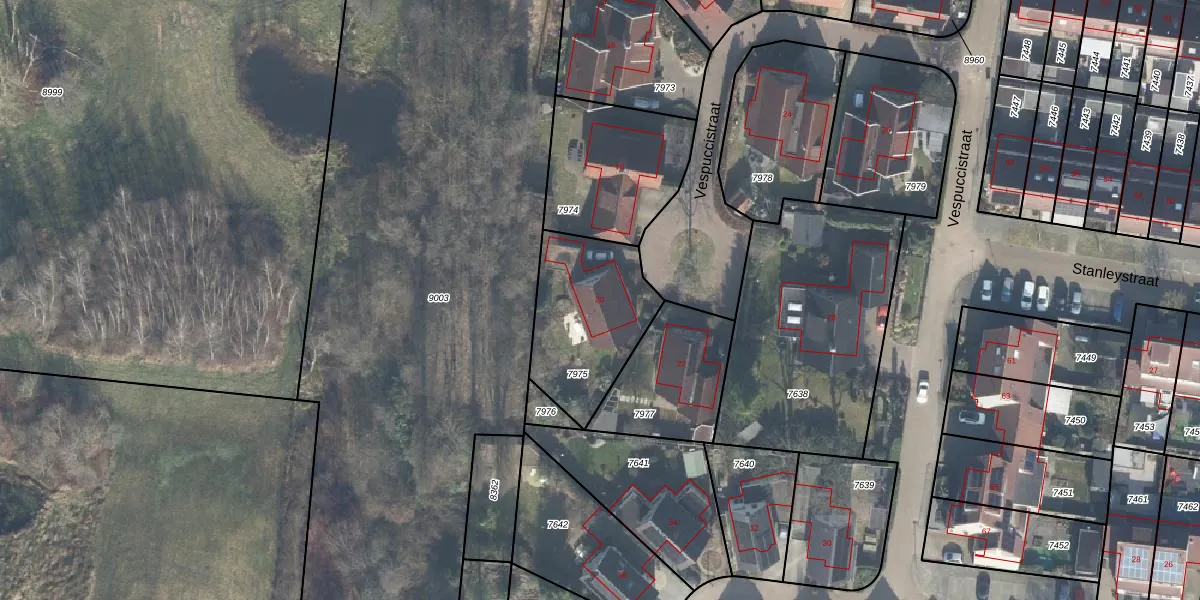 Vespuccistraat 20 is gelegen op kadastraal perceel LNK00E7975. Deze kadastrale aanduiding is uniek en wordt gebruikt door het Kadaster om eigendomsrechten en andere zakelijke rechten vast te leggen. Het perceel maakt onderdeel uit van de kadastrale gemeente Lonneker.