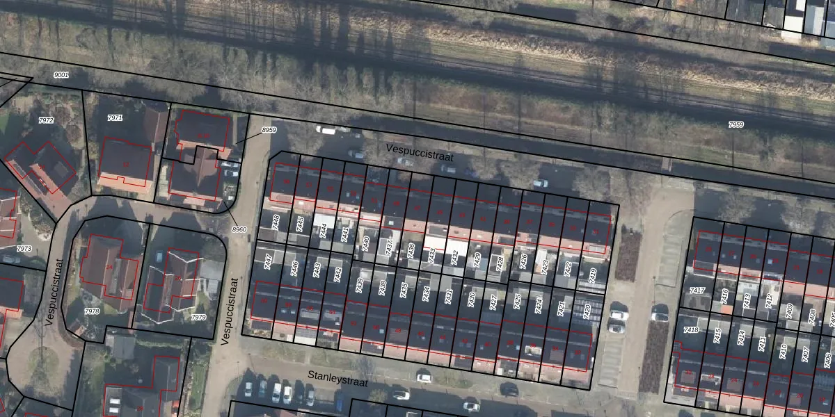 Vespuccistraat 47 is gelegen op kadastraal perceel LNK00E7436. Deze kadastrale aanduiding is uniek en wordt gebruikt door het Kadaster om eigendomsrechten en andere zakelijke rechten vast te leggen. Het perceel maakt onderdeel uit van de kadastrale gemeente Lonneker.