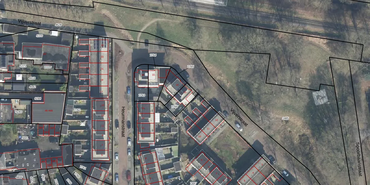 Het perceel waarop Vijverstraat 13 staat heeft een oppervlakte van 149 m². Dit is een middelgroot perceel. De perceeloppervlakte wordt geregistreerd door het Kadaster. Gedetailleerde informatie over de maten van dit perceel kunt u vinden in het rapport Kadastrale kaart met maatvoering van Vijverstraat 13.